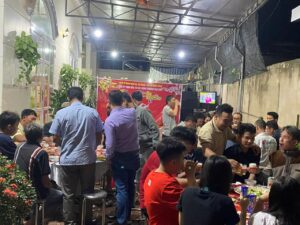 Bữa Tiệc là nơi tạo cơ hội để tất cả anh chị em trong Công ty tại các Dự án khác nhau gặp gỡ, giao lưu, vui chơi và chuẩn bị chào đón mùa xuân mới. Đồng thời cũng là khoảnh khắc để mọi người cùng sum họp quây quần bên nhau để cùng nhìn lại những chuỗi ngày tháng vừa đi qua, để cùng giao lưu, cùng trò chuyện chia sẻ với nhau về những kinh nghiệm cũng như những thành quả đã đạt được trong suốt chặng đường đã đi qua.